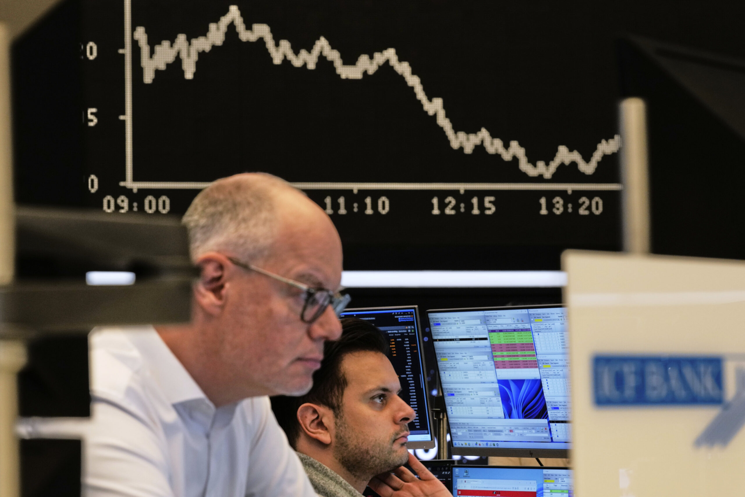 En el Ibex35, lideran las caídas Santander y Caixabank con pérdidas que superan el 3% Leer